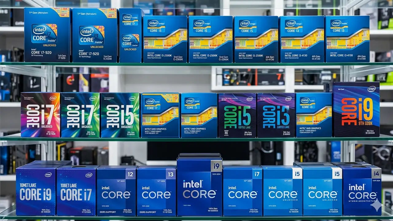 Intel Core memiliki berbagai generasi yang rilis hingga saat ini. Setiap generasi menghadirkan peningkatan signifikan dalam hal arsitektur, kinerja, dan fitur tambahan yang membuat pengalaman pengguna lebih baik.